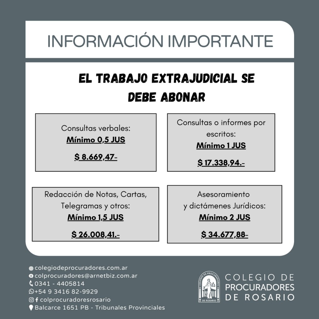 Los honorarios profesionales de abogados y procuradores, en materia extrajudicial deben ser abonados, así lo establece la Ley 6767.