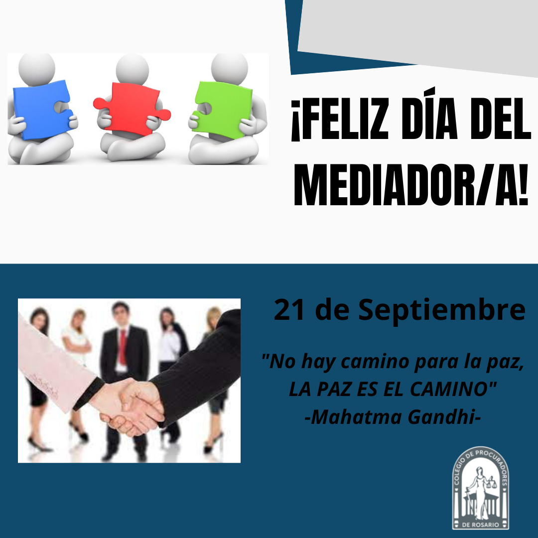 El Colegio de Procuradores de la ciudad de Rosario, saluda a los profesionales Mediadores/as en su dÃa, en especial a nuestros Colegiados/as, velando por la paz, el acuerdo y consenso.